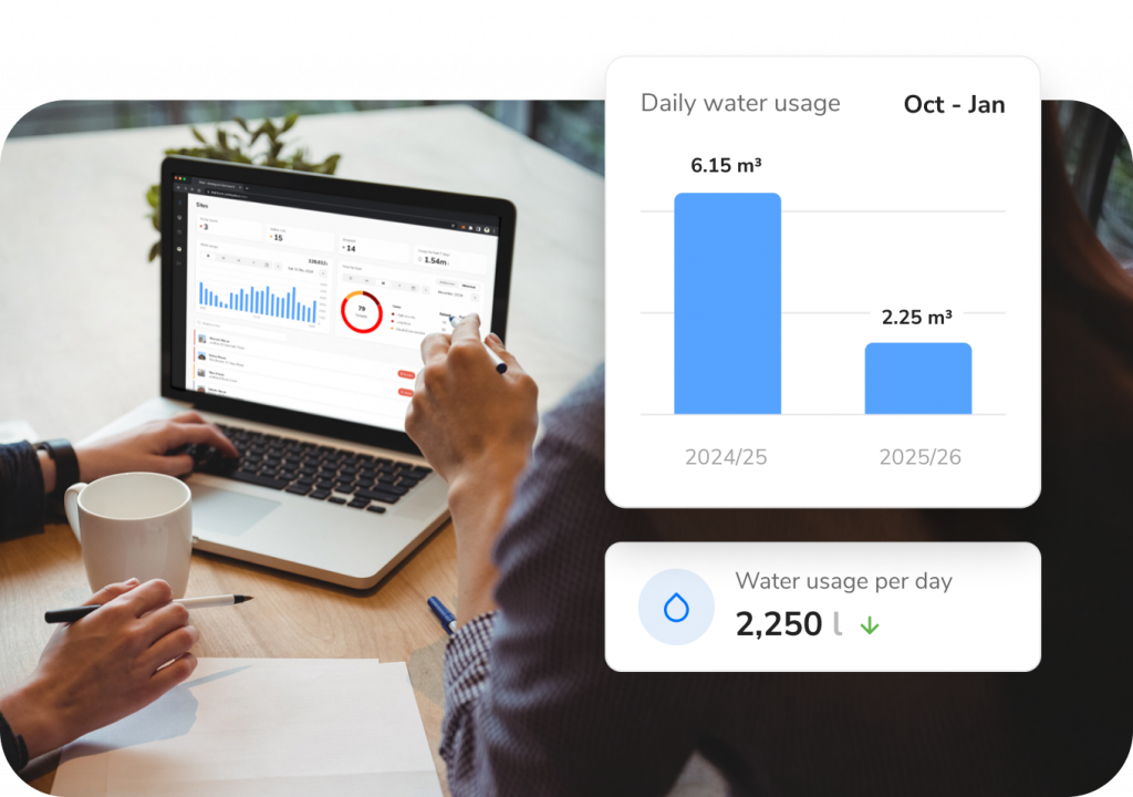 Every litre carries a carbon cost – treatment, pumping, heating, disposal. Reduce the water, reduce the carbon. But you can’t reduce what you don’t measure.