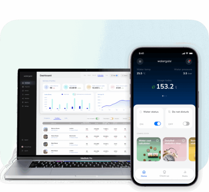 Experience the advantages of Watergate smart water management for your business. Our AI-driven technology offers real-time monitoring, leak prevention, and regulatory compliance to help you save on costs, protect your assets, and promote sustainability.
