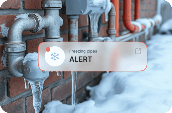 Sonic continually monitors temperature conditions to identify freeze risk, alerting property owners before pipes burst.